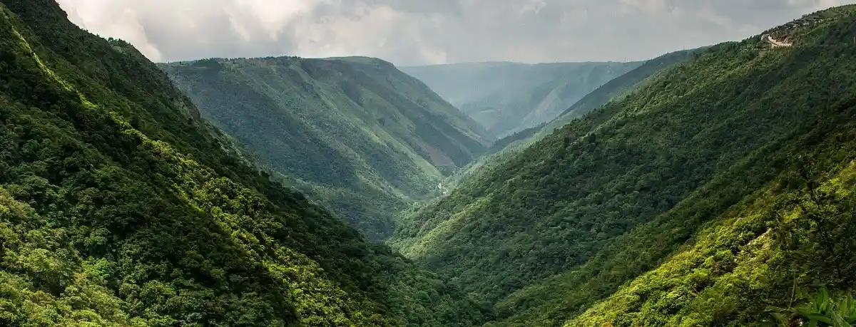 Day Highlights: Nohkalikai Waterfall, Mawsmai Caves, Elephanta Falls, Shillong Peak → On the second day of your Miracles of Northeast – Assam Arunachal Meghalaya Tour Packages, our team will pick you up from the hotel and embark on an enthralling journey to Cherrapunji. Perched 4,400ft above sea level, where nature reigns supreme, this picturesque town is one of the most beautiful offerings of all the Meghalaya travel packages.Previously known as the ‘Wettest Place on Earth’, the air here is thick with mist, wrapping around you like a soft embrace. As you approach, the stunning Nohkalikai Waterfall reveals itself; a cascade that plunges from the cliffs, as if pouring straight from the sky, its roar echoing through the valley, stirring something deep within.On your way, our team will also guide you to the enchanting Mawsmai Caves, where time itself seems to slow down! The cool, damp air and winding passages create an almost otherworldly feeling as if you are discovering a secret long kept by the earth. As you return to Shillong in the evening, the road takes you past the magical Elephanta Falls, a hidden gem flowing gracefully over rock formations and one of the integral offerings of all Meghalaya travel packages.A pit stop at Shillong Peak on your way back will allow you to enjoy panoramic views that stretch out like a dream. Enjoy the magical views of entire Shillong city from this vantage point before driving back to the hotel for your overnight stay in SHILLONG.